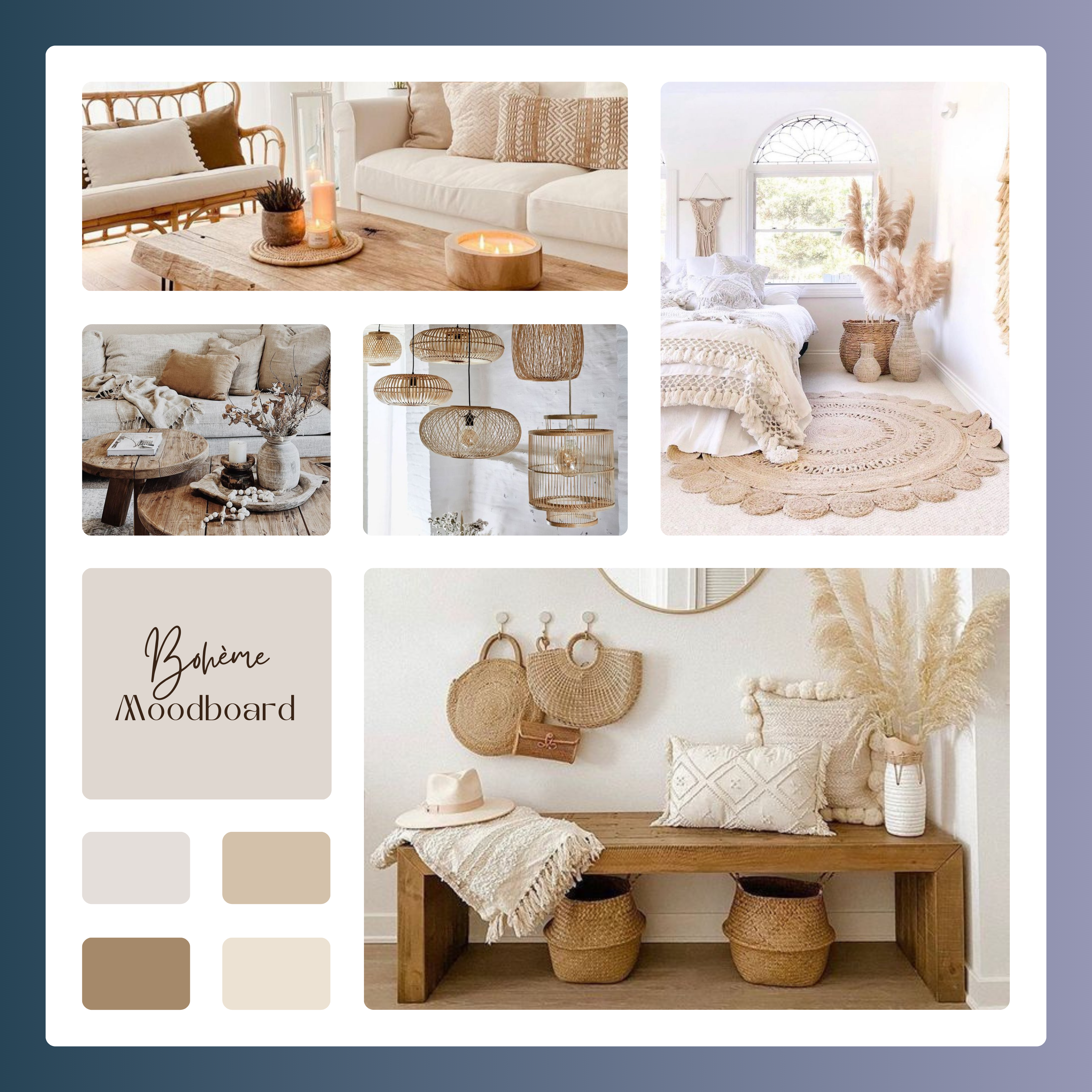 « Le style “Bohème”, avec ses touches de beige, de nude et de taupe, crée une atmosphère apaisante et terre-à-terre. Les tons neutres se marient avec des textiles riches en textures, des motifs ethniques et des accents de verdure pour un look bohème sophistiqué et relaxant. »